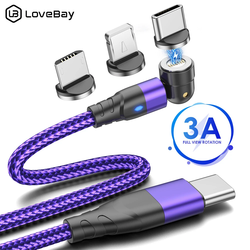 Lovebay 3A Fast Charger Cable 60W PD USB C To Type C Micro Magnetic Charger Data Cables for iPhone 12 11 Pro Max Xiaomi Samsung